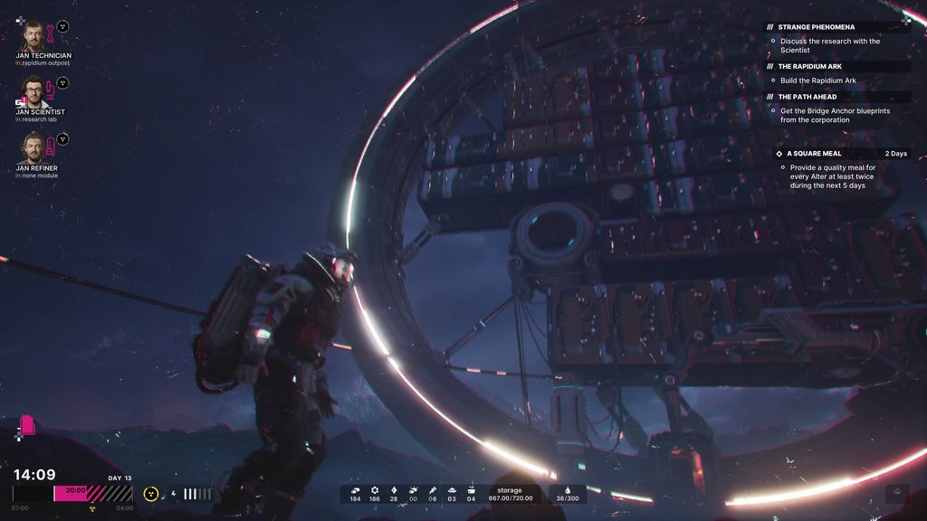 Dal punto di vista tecnico, 11 bit studios con The Alters ha fatto uno splendido lavoro. Costruito con l’Unreal Engine 5, offre ambientazioni suggestive, effetti particellari credibili e ottimi modelli dei personaggi, soprattutto nella varietà degli Alters. I volti sono espressivi, le animazioni convincenti, e la resa visiva della base, con la sua struttura a ruota modulare che si espande nel tempo, è originale e funzionale.
