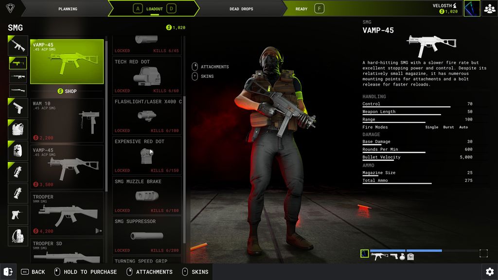 Morire equivale a perdere 1 delle 3 vite, ma riuscire a completare un’estrazione significa anche mantenere quanto ottenuto, giubbotto antiproiettile danneggiato incluso. Le skin, i cosmetici per il vestiario e gli accessori arma sbloccati usandole invece saranno permanenti. Scelte “da manuale” inmancabili, che ampliano il gameplay solo giocando, a prescindere dall’esito della partita.