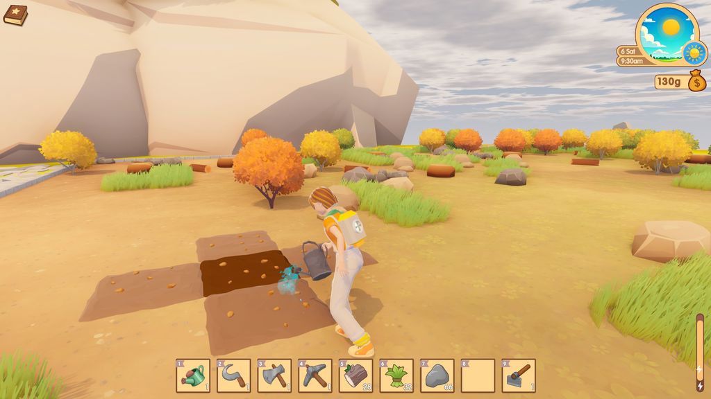 Le premesse di base sembrano buone, e dopo un apprezzato corto disegnato a mano di pochi secondi inizieremo a muovere in primi passi e fare le prime conoscenze. L’ispirazione si vede chiaramente arrivare da titoli come My Time at Portia, Stardew Valley, e anche il meno conosciuto The Witch of Fern Island. In questo caso sembra che l’unico tratto distintivo sia l’utilizzo del jetpack in un contesto generale che, purtroppo, tende a ricadere nella mediocrità…