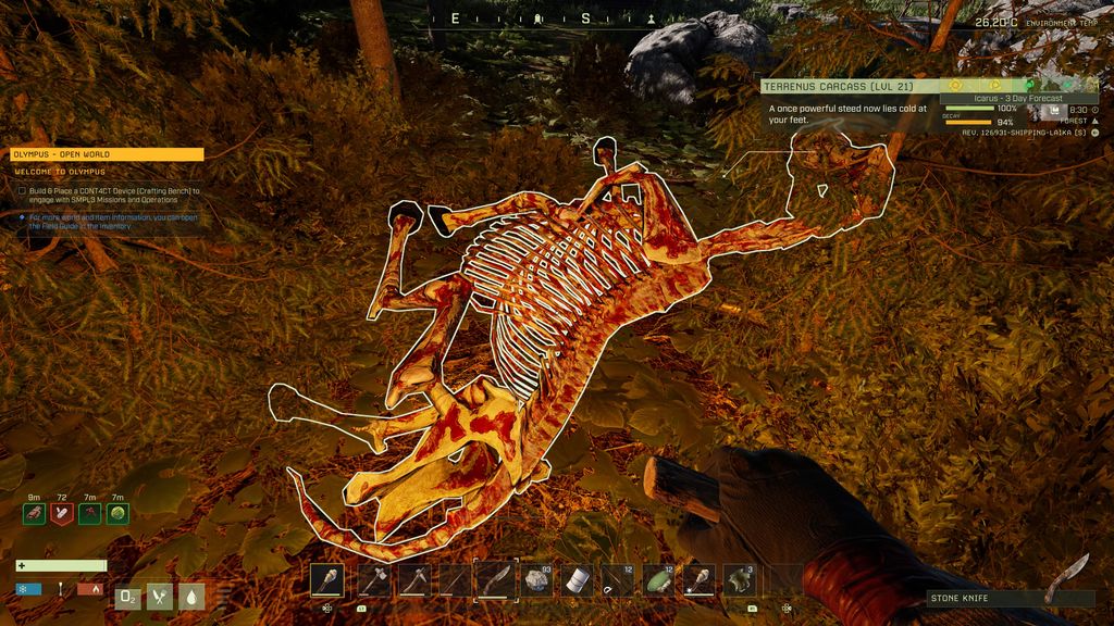 Il sistema di gioco è il vero cuore dell’esperienza, ed è qui che Icarus mostra sia i suoi muscoli che le sue fragilità. Si parte come da tradizione, raccogliendo legno e pietra, costruendo strumenti rudimentali e cercando di mettere insieme un riparo prima che il pianeta decida di metterci alla prova con una tempesta improvvisa.