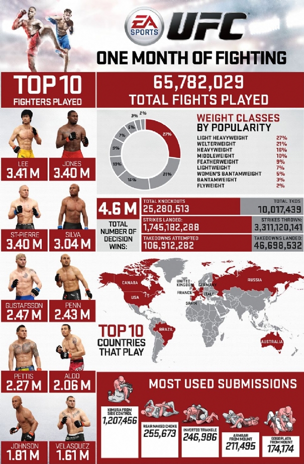Un’iconografia diffusa da EA Sports ha mostrato i dati registrati durante il primo mese sul mercato di EA Sports UFC,…